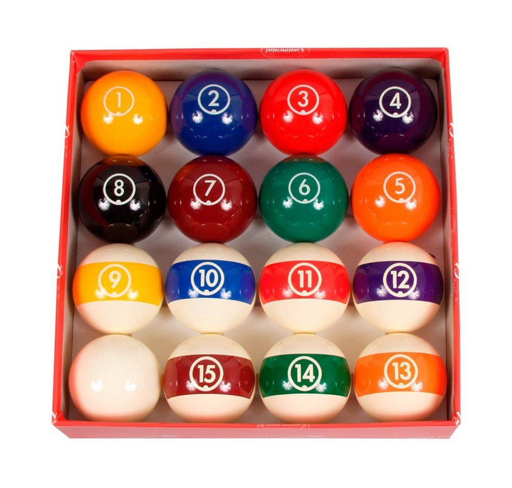 A készlet 15 db színes és 1 db fehér golyót tartalmaz.