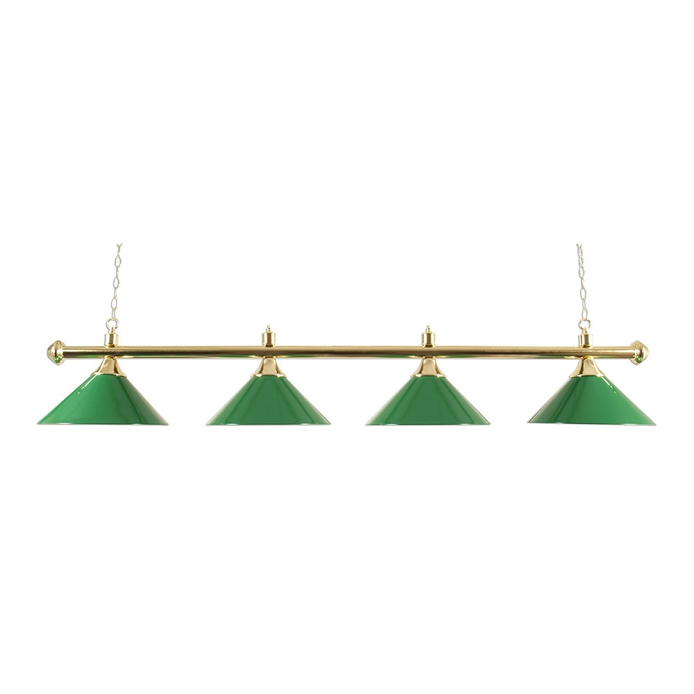 Biliárd lámpa 4db zöld búrával, réz, 180 cm-es rúddal