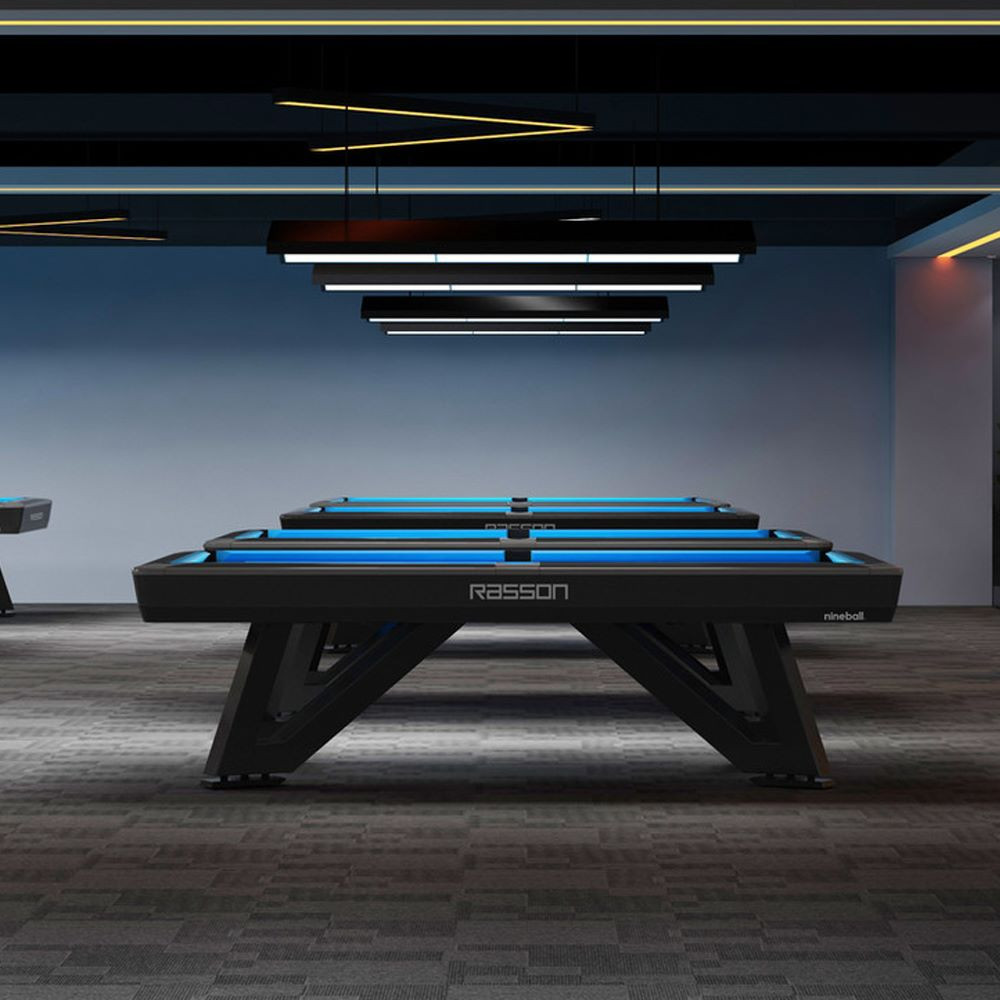 A Rasson Wolf 9' egy prémium kategóriás, versenyekre is alkalmas biliárdasztal, amelyet modern, elegáns formavilág és kiemelkedő műszaki megoldások jellemeznek. A fekete fluorokarbon felület, a letisztult kontúrok és a "W" formájú fém lábak egyedülálló, karakteres megjelenést kölcsönöznek az asztalnak – miközben maximális stabilitást biztosítanak.