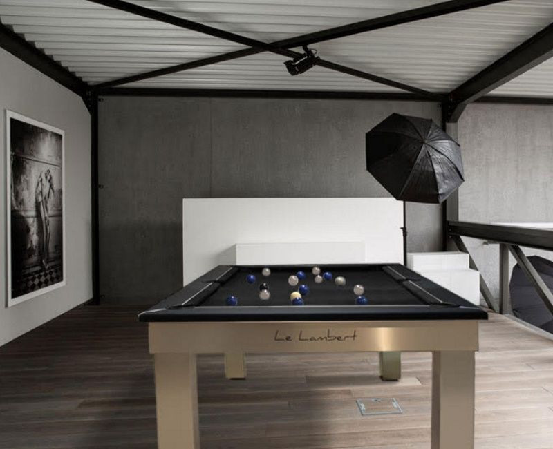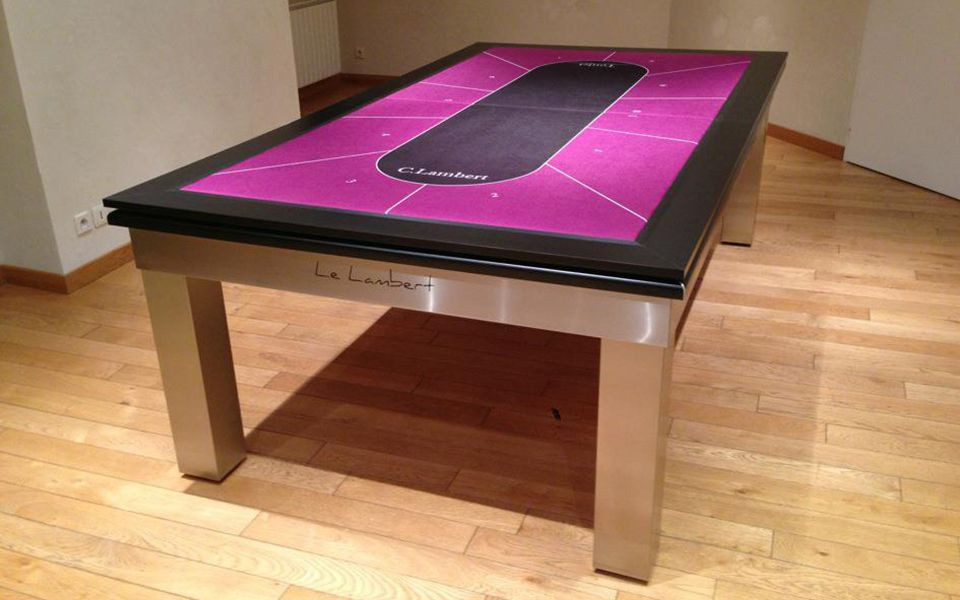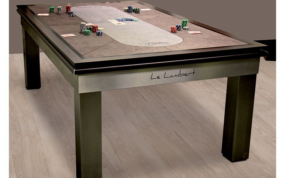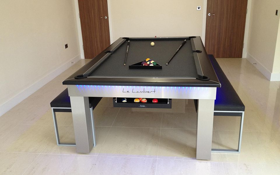 A Lambert asztalt olyan esztétikai szempontok alapján hozták létre, hogy tökéletesen illeszkedjen minden nappaliba illetve játékszobába. Vékony kerete és keskeny lábai tökéletes étkező vagy játék asztallá teszik, de a beépített fémkeret miatt erős, masszív biliárdasztal marad.