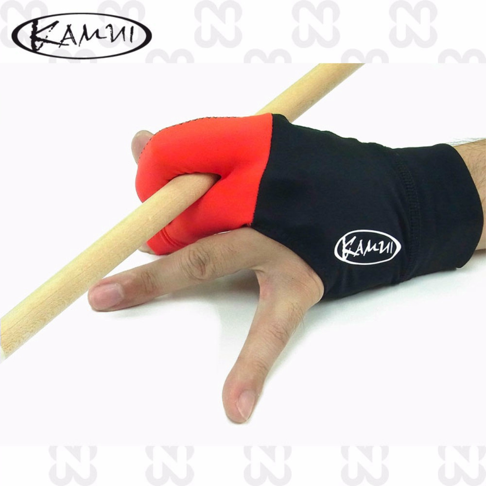 Kiváló minőségű, nyitott ujjú Olasz biliárd kesztyű fekete/piros színben,