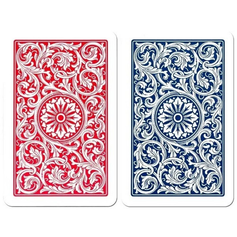 Ez a doboz 2 pakli kártyát tartalmaz. A kártyák műanyagból készültek, mindegyik pakli 52 lapot és 2 jokert tartalmaz. A kártyák Bridge méretűek.