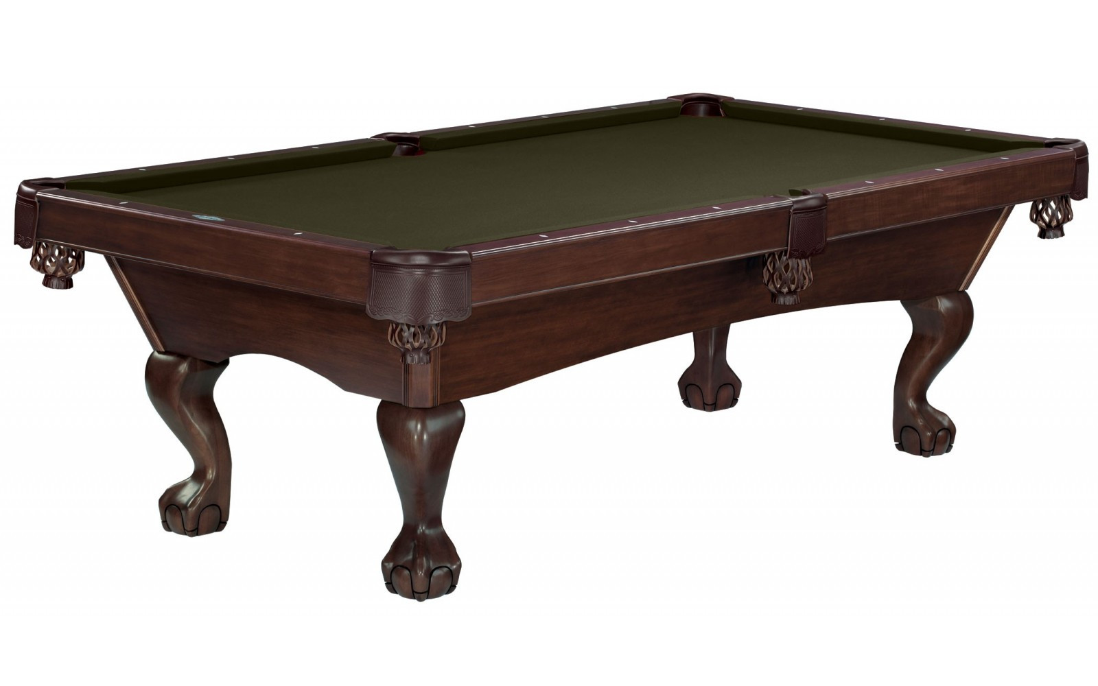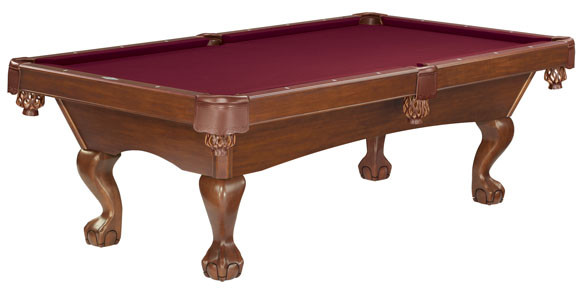 8'-as méretű, gesztenye színű asztal Ball and Claw típusú lábakkal.