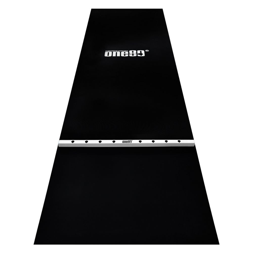 Dart gumiszőnyeg fa dobóléccel ONE80, 90cm széles, fekete-fehér