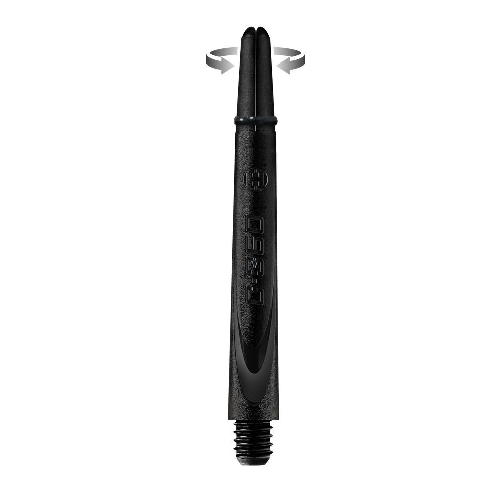 A tartós polikarbonát test és a kemény, karbon kompozitból készült elforgó top felhasználásával készült, egyedi profillal rendelkező szárak fokozzák az aerodinamikai áramlást. A cserélhető szénszálas felső rész a szár főtestéhez van rögzítve, és nem forog szabadon vagy zörög. Ehelyett csak akkor forog el az útból, amikor a beérkező dartsok érintkeznek, így azok rendeltetésszerűen jutnak be a táblába. Erre a szempontra összpontosítottunk a szár kifejlesztésekor, mivel nem akartuk, hogy a felső rész pörögjön vagy zörögjön. Dobás közben pontosan ugyanolyan érzés, mint egy hagyományos szár.
