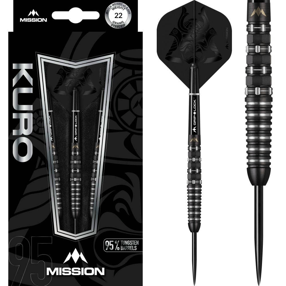 Dart szett Mission steel Kuro 22g, black, M3, rear iso-grip, 95%