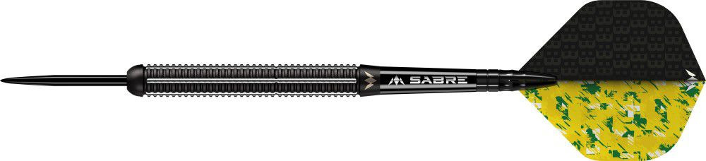 A test hátulján egy kis sima felület található, rajta lézergravírozott Mission logóval. A dart fekete hegyekkel, fekete Mission Sabre szárakkal és Banks aláírt tollaival van ellátva.