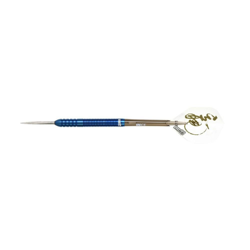 Kézzel készített extra vékony (5,6 mm) 90%-os wolfram tartalmúdarts készlet, kék titán-nitrid bevonattal.