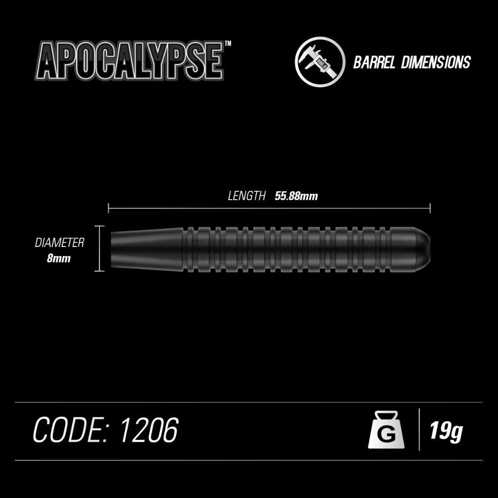Remek minőségű, feketén bevont réztestű dartszett. Az Apocalypse szériában többfajta kialakítású nyíl