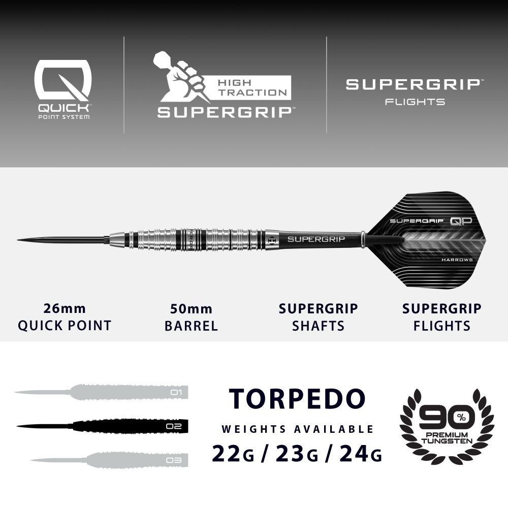 Dart szett steel Harrows QP Supergrip Torpedo 23g, 90% wolfram