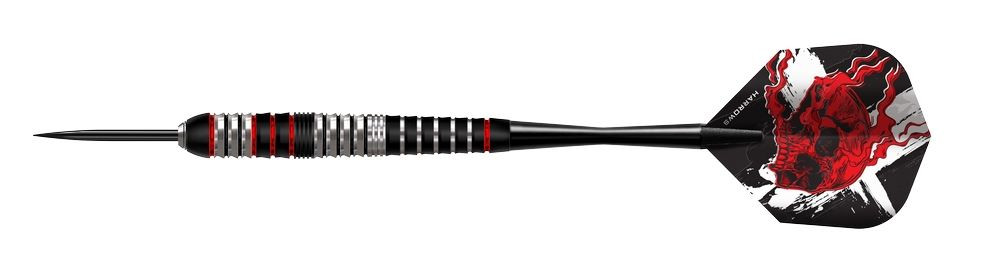 A Harrows Heavy Metal a PDC-bajnok Ryan Searle ikonikus szettje által ihletett modell, amelyet a teljesítmény, pontosság és magabiztosság jegyében terveztek. A kúpos testforma és a teljes hosszában mart tapadófelület kiváló kontrollt és kényelmes fogást ad minden dobásnál. A fekete–piros színvilág ezüst részletekkel látványos és hatékony megjelenést biztosít.