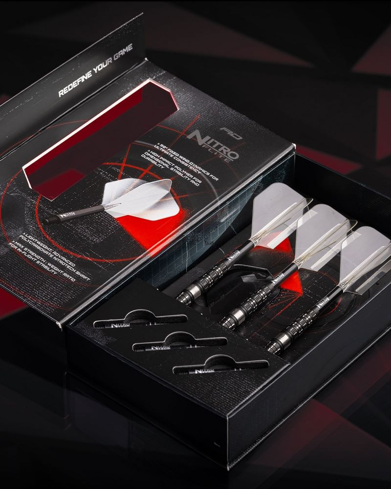 Nitro Flite integrált toll–szár rendszerrel érkezik, amely profi szintű stabilitást és egyenletes teljesítményt nyújt. Extra elemként érkezik a csomaggal 1 csomag Nitrotech rövid szár és 1 csomag plusz No2-es toll.