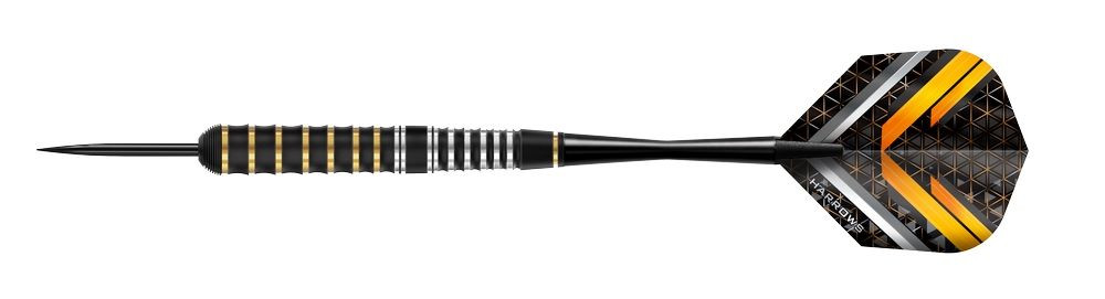 A Harrows Vulcan darts szett vulkanizált gumiborítással készül, amely kivételes kényelmet és biztos fogást nyújt. A párhuzamos testforma és a fekete–arany kéttónusú felület elegáns megjelenést ad, míg a gumírozott markolat csúszásmentes tartást biztosít a pontos célzáshoz és stabil dobásokhoz. Kezdőknek és fejlődő játékosoknak készült, akik stílusos, megbízható felszerelést keresnek.