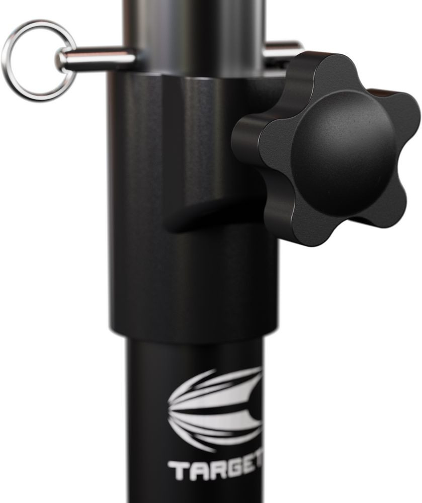 Az állvány egyszerűen használható, állítható magassági rendszerrel van felszerelve. Egy könnyen kezelhető magasságállító csavar segítségével a dartstáblát mindig a szabványmagasságban rögzítheti. Az állvány minden acélhegyű dartstáblával kompatibilis, és a tábla rögzítése vagy eltávolítása gyors és egyszerű, így másodpercek alatt kezdheti a játékot.