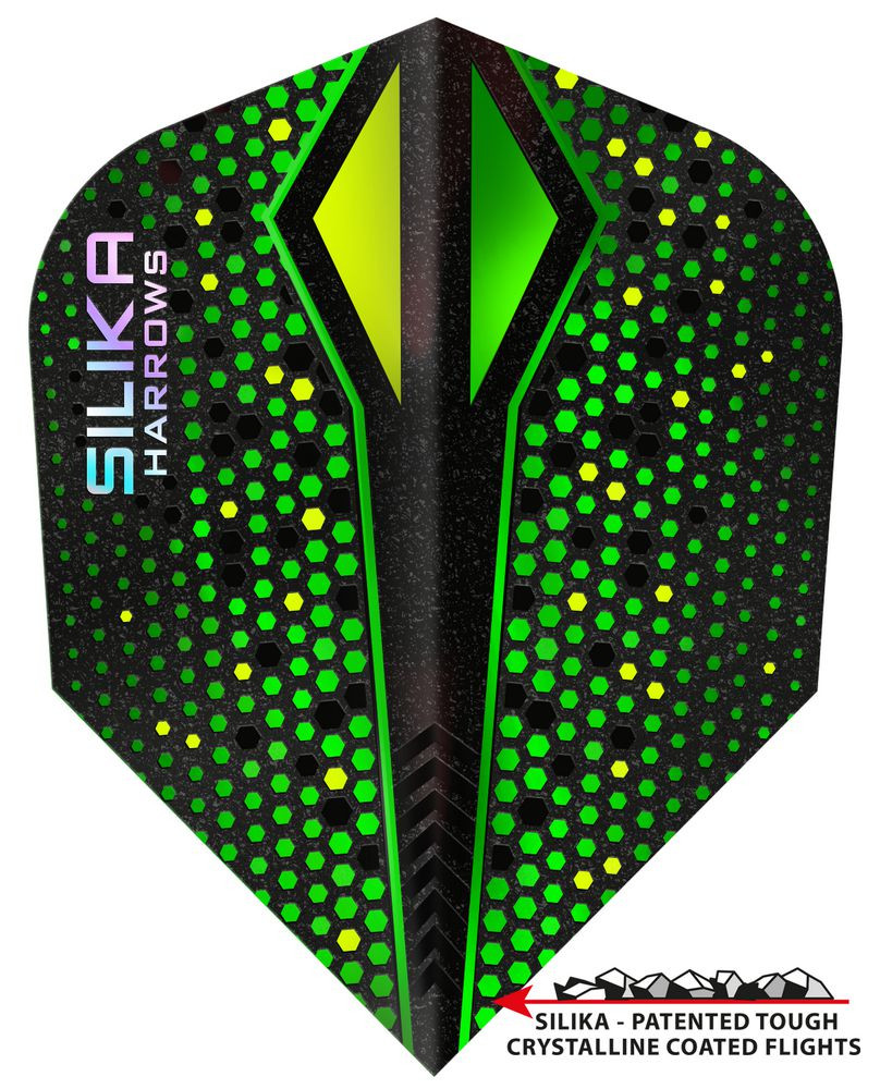 Ultra-kemény Silika részecske bevonat - az eddigi legerősebb Harrows toll. A texturált felület növeli a felületet, ami lassítja és stabilizálja a repülési pályát. Központi Silika zónának köszönhető a megnövelt repülés/tengely tapadásért. Az Egyesült Királyságban tervezett és gyártott Silika egy vadonatúj termékcsalád, amely semmi mással nem hasonlítható össze a piacon. A prémium tollak 100 mikronos vastagsággal készülnek. A Silika bevonat apró darabkákat tartalmaz, amelyek teljesen egyedi megjelenést és érzetet adnak a tollaknak, jobb teljesítmény mellett. A Silika tollak egyik legfontosabb jellemzője a tartósságuk. A Silika bevonat hozzáadása jelentősen növeli a szilárdságot, miközben védi a tollat és minimalizálja a sérüléseket. A smirglipapírhoz hasonlóan a felülete durva. Dobáskor a megnövekedett felület csökkenti a dart repülés közbeni sebességét és stabilizálja a dart repülési pályáját.