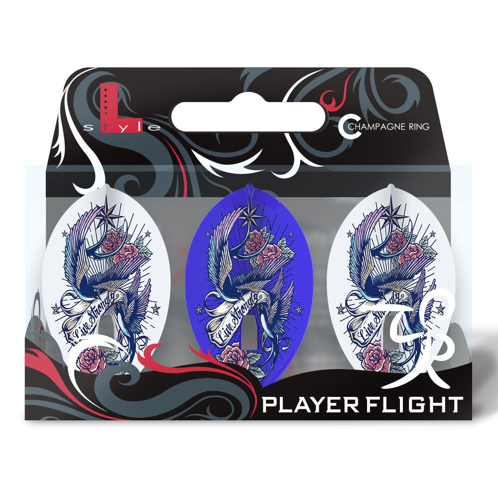 Az egyedi L-style "Champagne Ring" szorítógyűrűkkel tökéletesen rögzíthető a szárra ez a prémium minőségű Japán darts toll. A sérülések ellen a toll végei és a fontosabb helyek meg vannak erősítve. A toll "szárnyai" 90 fokban állnak egymáshoz képest, a tökéletes repülés érdekében. Annak érdekében, hogy ez így is maradjon, érdemes L-style tokot használni hozzájuk, vagy bármilyen olyan tokot, amiben szétszedés nélkül kényelmesen tárolható a darts szett.