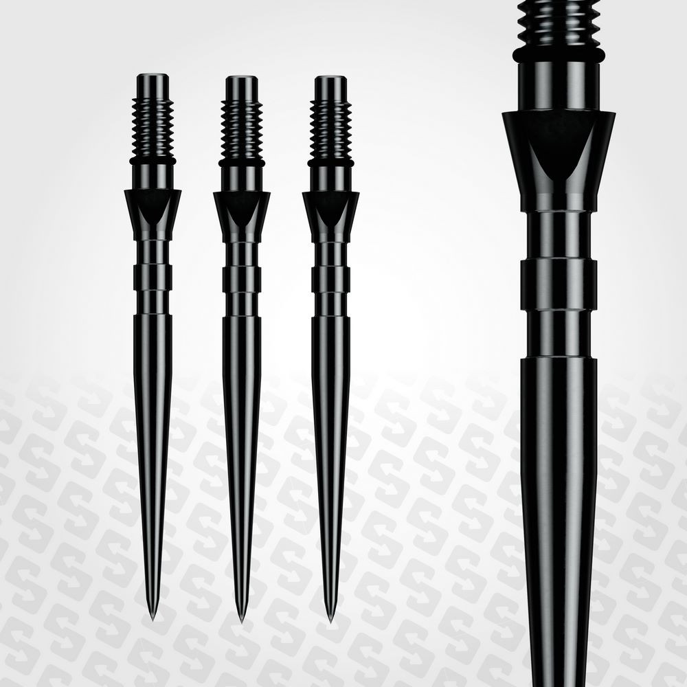 A kúpformájú, teljesen sima átmenet segít minimalizálni a lepattanásokat, csökkenti a szárak sérülését, és javítja a darts aerodinamikáját. Minden egyes Switch Point edzett, magas széntartalmú acélból készül, majd bevonatot kap a még nagyobb tartósság és korrózióállóság érdekében.