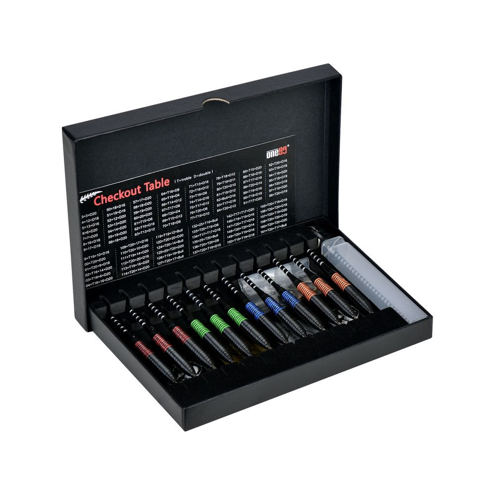 Darts steel készlet One80 Elmar Paulke, brass,12 db nyíllal, kiegészítőkkel