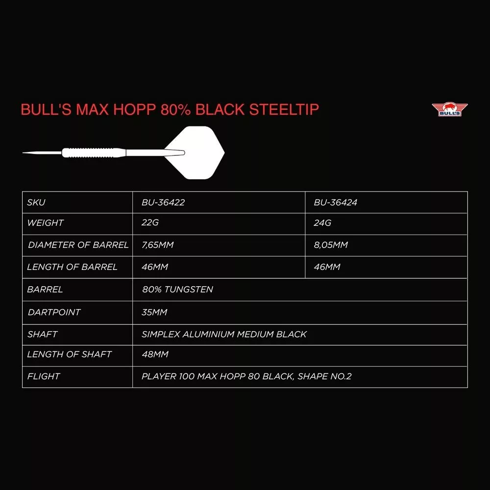 Bull’s Max Hopp 80% Black a