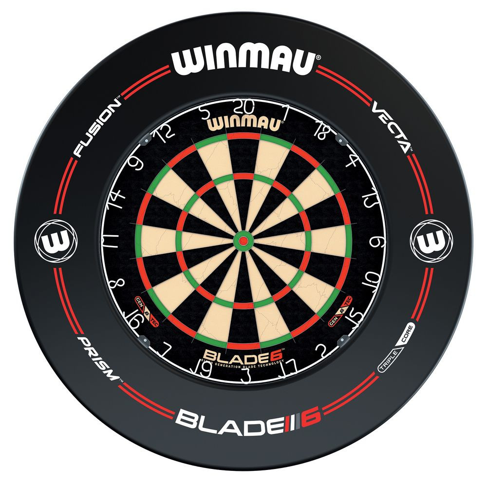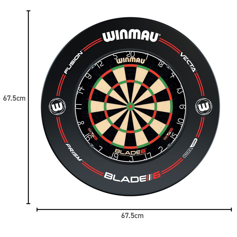 Darts tábla Winmau Blade6, Blade 6 Pro-Line fekete falvédővel, két szett nyíllal, startvonallal, kiszállóval
