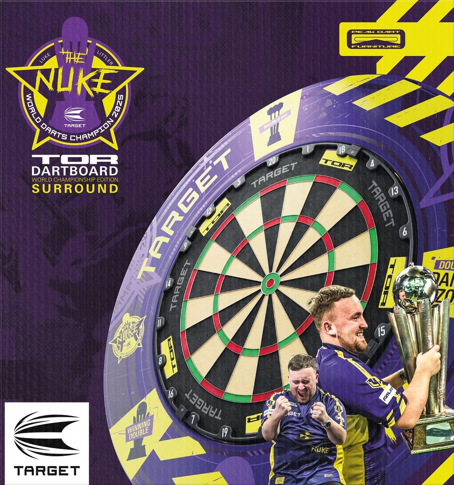 világbajnoki kiadású TOR dartstábla és falvédő kombóval! A 2025-ös PDC Darts Világbajnokság történelmi győzelme után Luke beírta magát a rekordok könyvébe mint a valaha volt legfiatalabb világbajnok, és mint az a játékos, aki egy naptári évben a legtöbb 180-at dobta. Most te is elhozhatod a győzelem szellemét az otthonodba ezzel a bajnokok számára tervezett csomaggal.