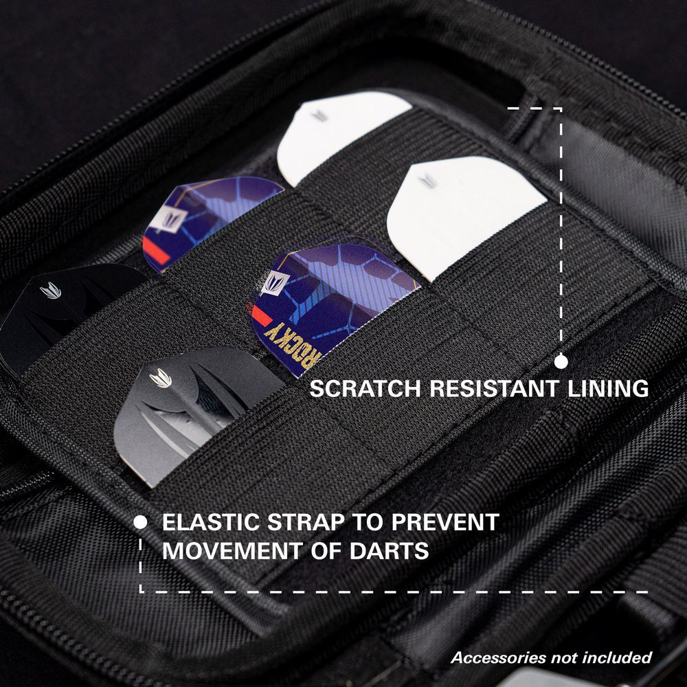 A tok hatékony rendezést biztosít két cipzáros zsebbel, amelyek dedikált helyet biztosítanak tartalék darts kiegészítőknek, mint például tollak, szárak, hegyek vagy egy Swiss Point szerszám, így könnyen hozzáférhetőek intenzív játékok során.