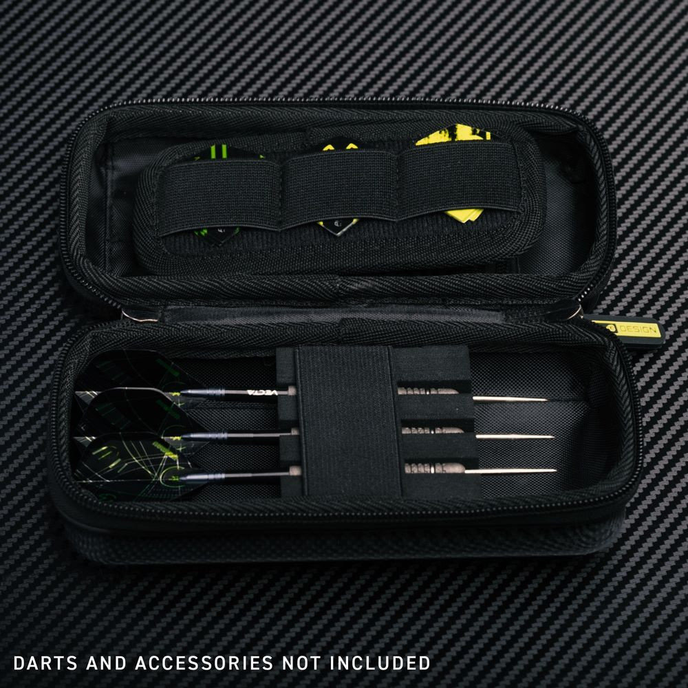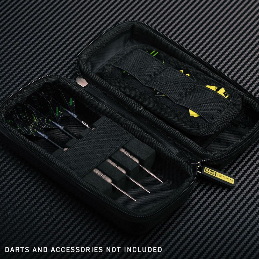 Armor MvG dizájn G1 Darts tok prémium védelmet nyújt erős, ütésálló fekete páncélborításával. Egy teljes felszerelt darts szettet tud tárolni, valamint külön zsebeket tartalmaz tollak és szárak számára.