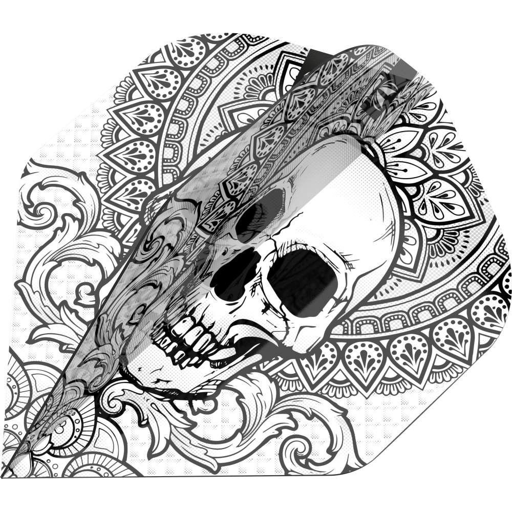 Koponya mintájú tetoválás minta a darts tollon. Különleges hatás.