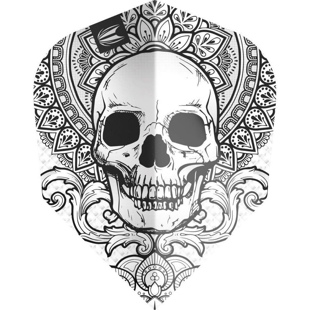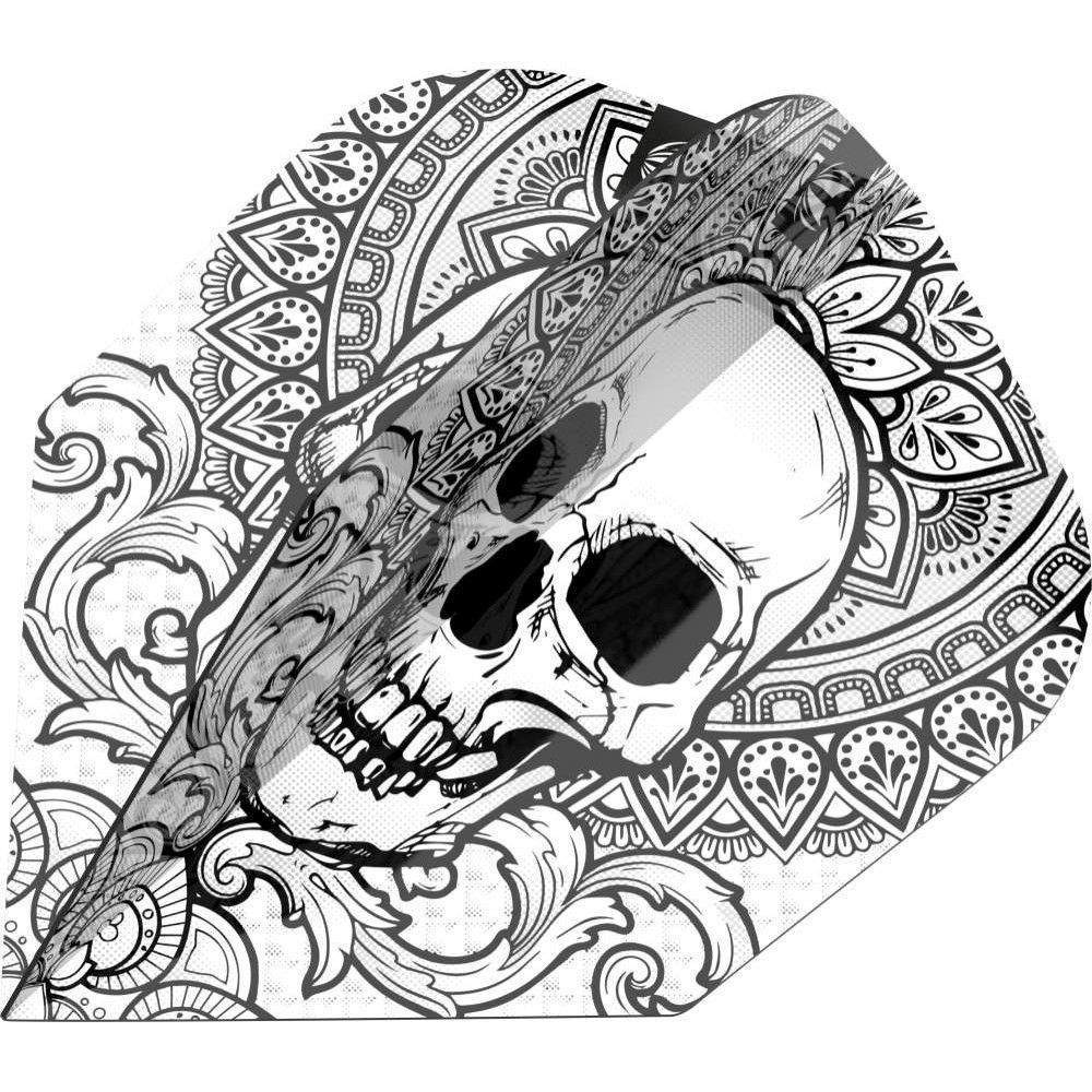 Koponya mintájú tetoválás minta a darts tollon. Különleges hatás.