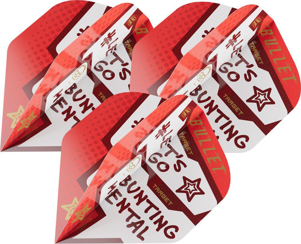 Stephen Bunting, a 2024-es PDC Masters bajnok, "The Bullet" együttműködésével készült, ez a termék élénk piros színsémával rendelkezik. A Pro Ultra Bunting tollak büszkén viselik azt az ikonikus rigmust, amelyet a rajongók gyakran hallatnak a mérkőzései során: „Let’s Go Bunting Mental!”. A tollak