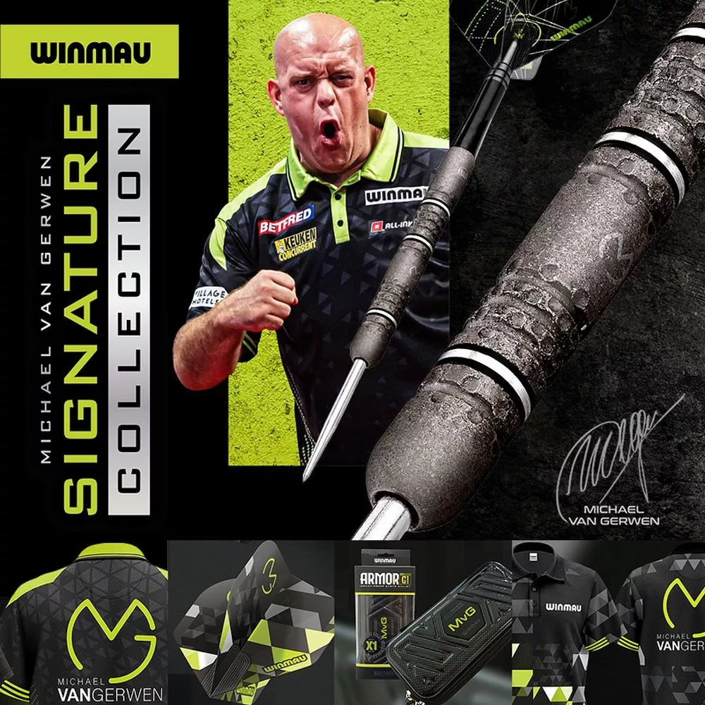 Winmau MvG darts tollak letisztult, erőteljes színblokkal és