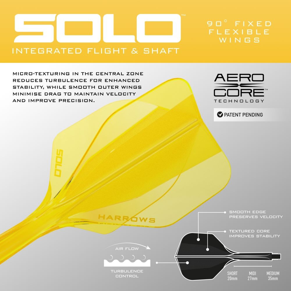 Darts toll és szár egyben Harrows Solo citromsárga, No6 toll és rövid szár
