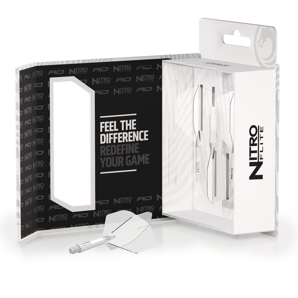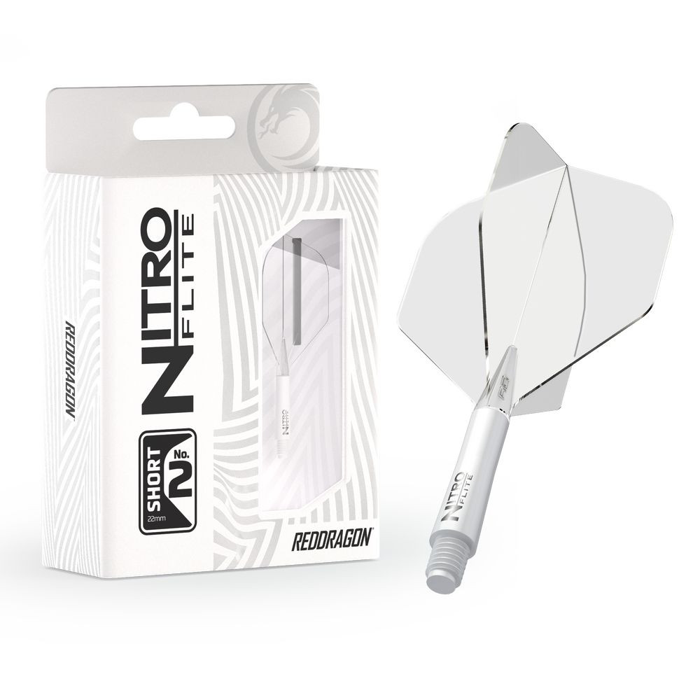 Darts toll és szár egyben Red Dragon Nitro Flite átlátszó, standard toll és rövid szár