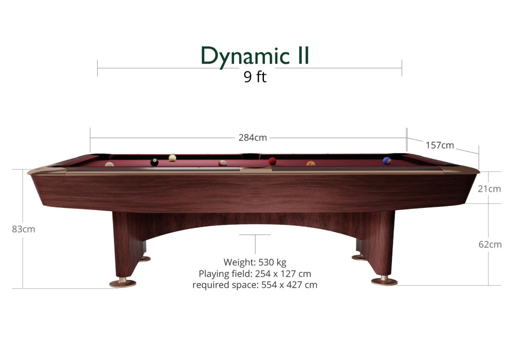 Tetszetős, modern dizájnjával a Dynamic II biliárdasztal tökéletesen illeszkedik játéktermekbe és privát biliárdszobákba is.