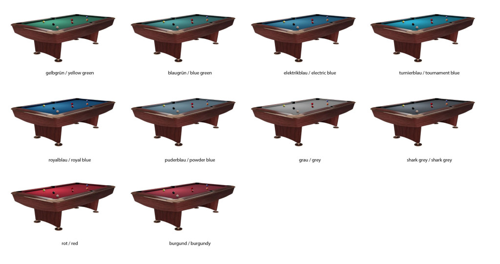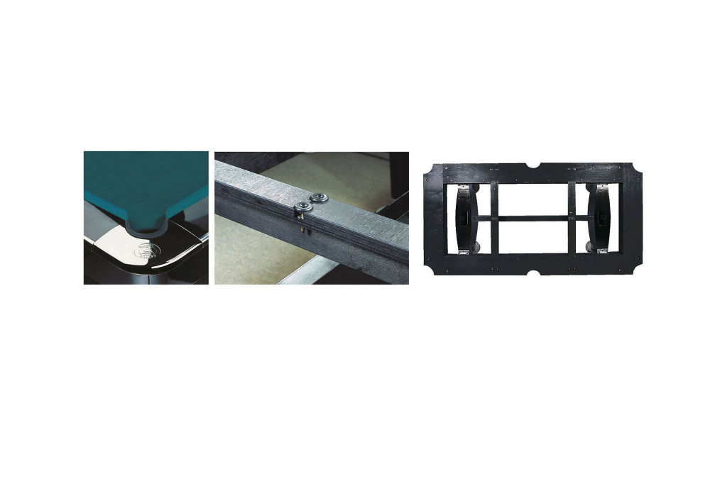 Az osztott lábú kiegyenlítők és a 18 db, a keretbe behelyezett palakiegyenlítő lehetővé teszi a professzionális háromrészes palalemez legpontosabb beállítását századmilliméteres pontossággal. A gyors, egyenletes K55-ös gumipárnák és az első osztályú biliárdszövet garantálja az optimális golyó gurulást és a golyók tökéletes visszapattanását.