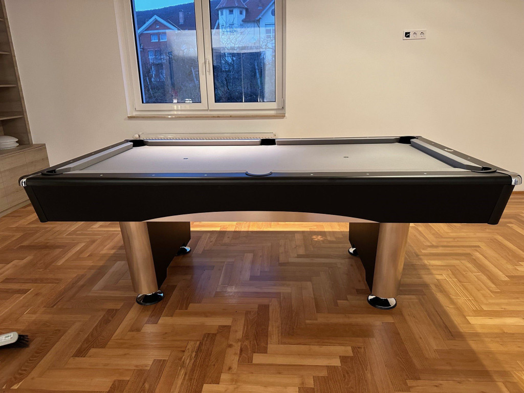 A 20 mm vastag, három részből álló palalap, a prémium mandínerek és az a-kategóriás biliárdszövet biztosítja a biliárdgolyók optimális sebességét, sima gördülését és kiváló visszapattanási tulajdonságait.