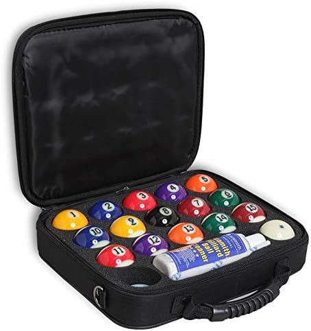 szabványos 57,2 mm (2 1/4") átmérőjű golyókat tartalmaz, így minden hivatalos méretű poolasztallal kompatibilis.
