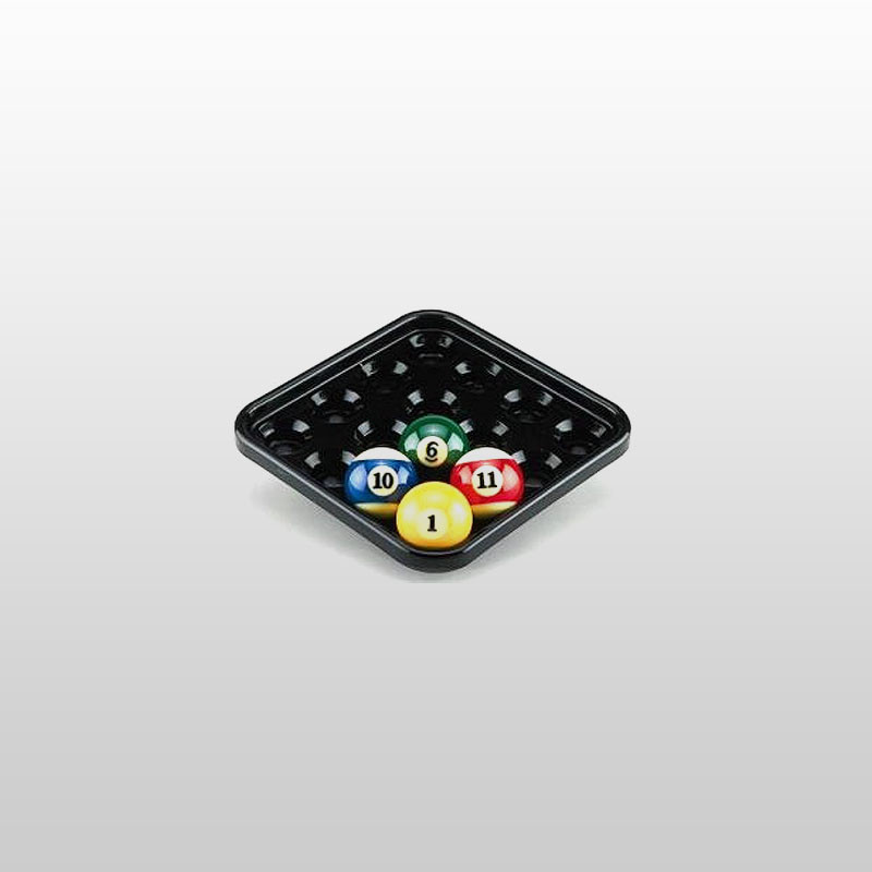 A tálca kemény műanyagból készül, strapabíró, ütésálló kivitelben. A belső kialakítása pontosan illeszkedik a 57,2 mm-es (2 1/4") pool golyókhoz, így megakadályozza a golyók elmozdulását. Használható asztal mellett, tárolópolcon vagy vitrinben is.