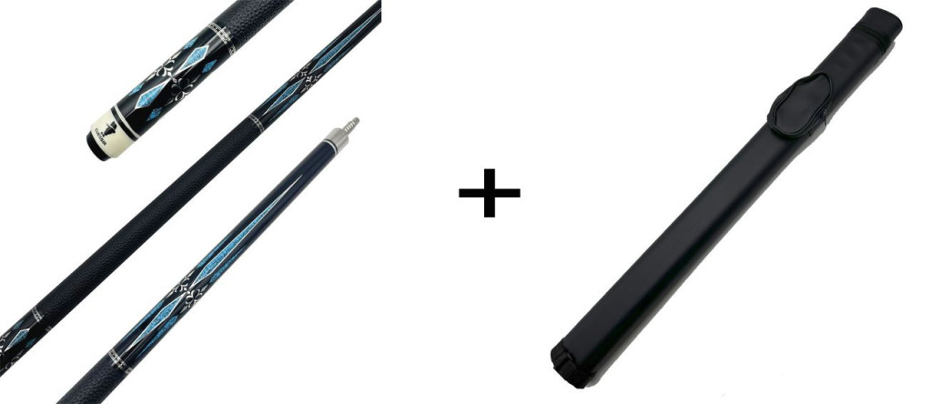 Pool dákó kétrészes Cuesir carbon spiccel – 12,5 mm rétegelt bőrrel (fekete-kék)