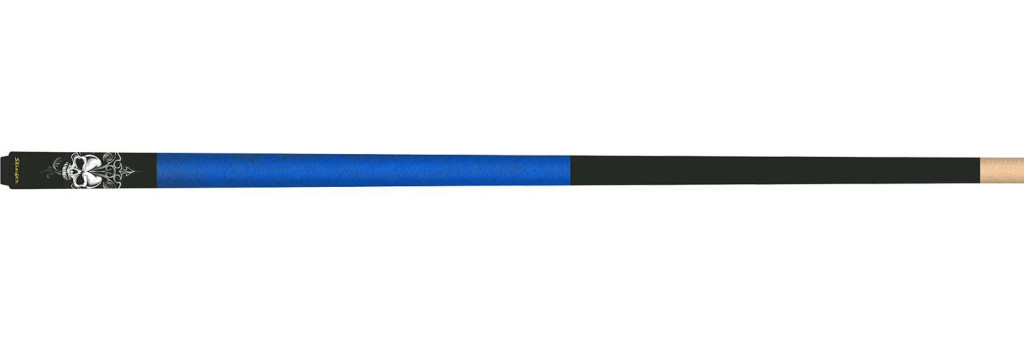 Stinger Skulls No. 1 kétrészes pooldákó koponya díszítéssel. A Stinger Skulls 1 biliárddákó feketére festett keményfából készült, fekete szinre festett és kék nylon markolattal rendelkezik. A hegyen lévő 12 mm-es csavaros vég könnyen cserélhető.