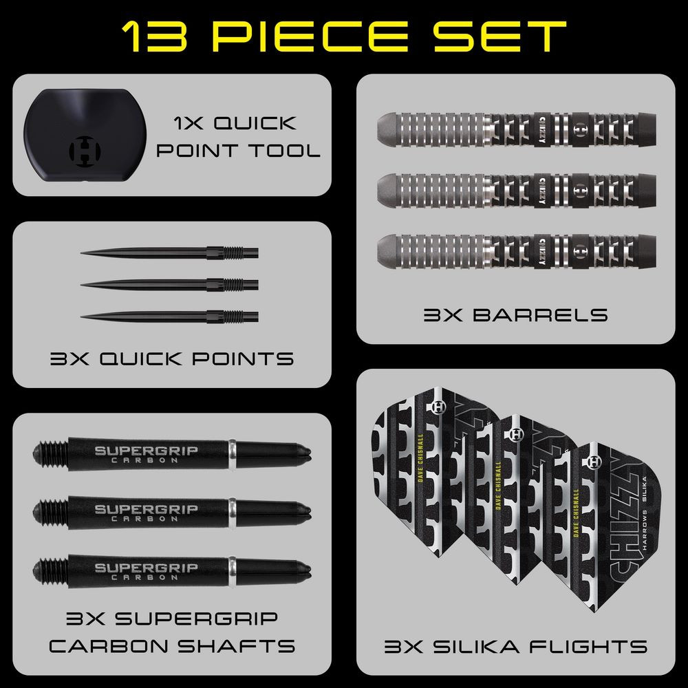 A Harrows Chizzy Series 4 a 27 PDC-címmel büszkélkedő Dave "Chizzy" Chisnall legújabb, továbbfejlesztett darts szettje. A sorozat a legmagasabb szinten versenyző játékosok igényeire készült: kompromisszummentes kontroll, stabilitás és önbizalom minden dobásnál. Megőrzi a jól bevált, párhuzamos testkialakítást, ugyanakkor teljes hosszában homokfúvott felületet kapott az ultra durva textúráért és a következetes elengedésért.