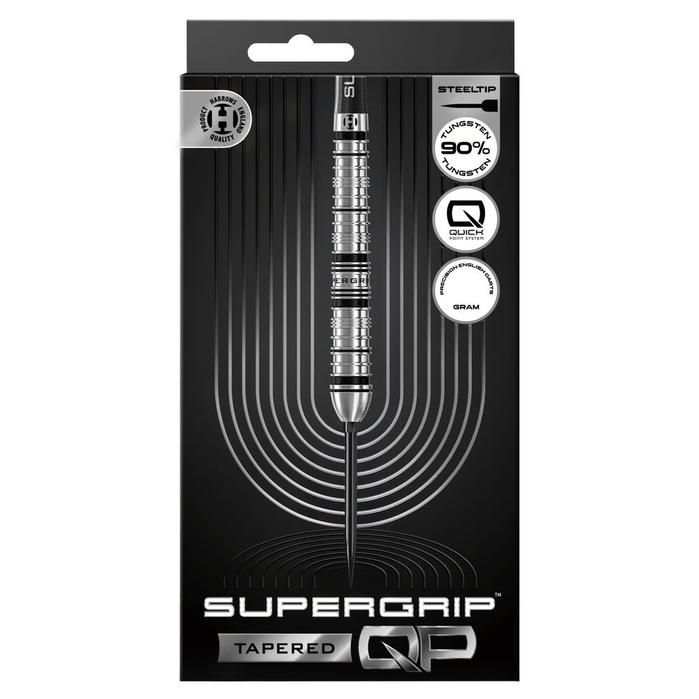 A Supergrip QP a legendás Harrows Supergrip sorozat modern evolúciója. A 90% wolfram nyíltest a maximális irányítás, tökéletes egyensúly és következetes teljesítmény jegyében készült. A teljes hosszban kialakított, mély egy- és duplagyűrűs marások kivételes tapadást és kényelmes fogást adnak, miközben a nyíl simán és pontosan hagyja el a kezet.