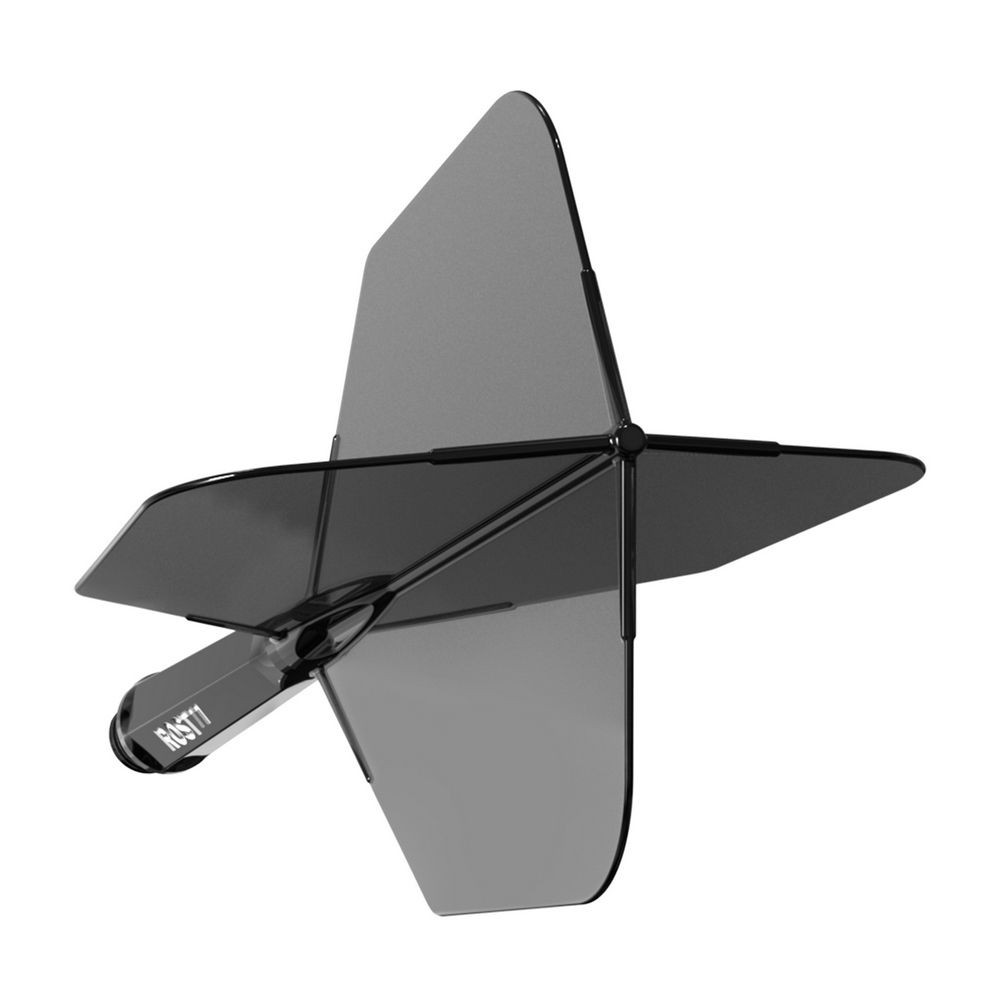 Nagy átlátszóságú, kopásálló anyagból készült. Egyedi hatszögletű darts szár kialakítás, amely a hagyományos kör formához képest könnyebben megszorítható csúszás nélkül. A menetnél kialakított négy megerősítés hatékonyan akadályozza meg, hogy a szár kilazuljon vagy játék közben leessen. Kézzel festett, dombornyomott ROST 77 logóval díszített. Precíziós fröccsöntéssel készült toll biztosítja a 90 fokos szögben való stabil rögzülést minden dobásnál. A felső és alsó tollrészen elhelyezett extra erősítő bordák megakadályozzák a szakadásokat. Nagyméretű „Big Wing” forma (1048 mm² felület), amely maximális repülést és kiemelkedő stabilitást nyújt a levegőben.