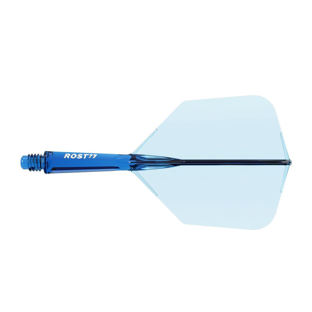 Nagy átlátszóságú, kopásálló anyagból készült. Egyedi hatszögletű darts szár kialakítás, amely a hagyományos kör formához képest könnyebben megszorítható csúszás nélkül. A menetnél kialakított négy megerősítés hatékonyan akadályozza meg, hogy a szár kilazuljon vagy játék közben leessen. Kézzel festett, dombornyomott ROST 77 logóval díszített. Precíziós fröccsöntéssel készült toll biztosítja a 90 fokos szögben való stabil rögzülést minden dobásnál. A felső és alsó tollrészen elhelyezett extra erősítő bordák megakadályozzák a szakadásokat. Nagyméretű „Big Wing” forma (1048 mm² felület), amely maximális repülést és kiemelkedő stabilitást nyújt a levegőben.