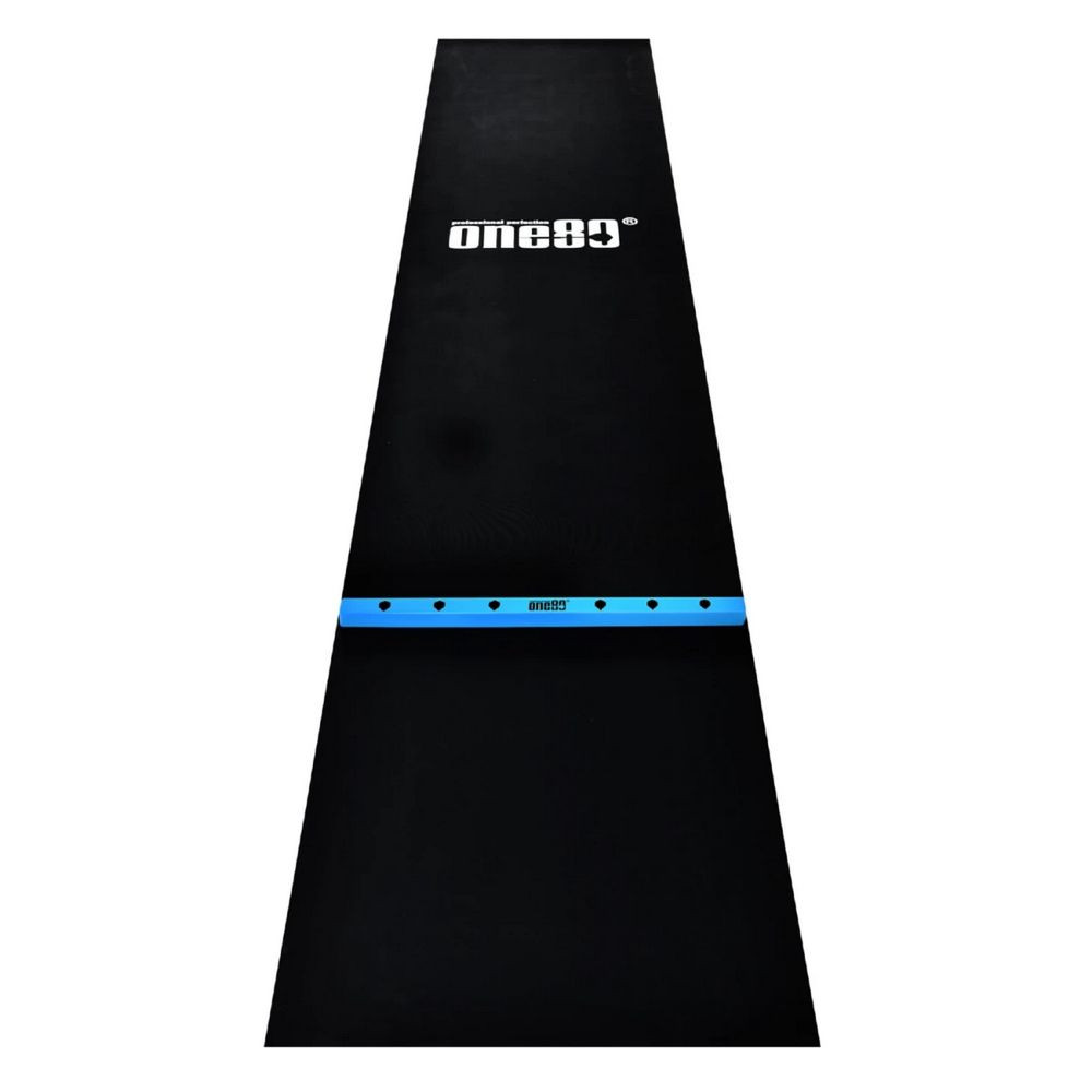 Dart gumiszőnyeg fa dobóléccel ONE80, 62cm széles, fekete-kék