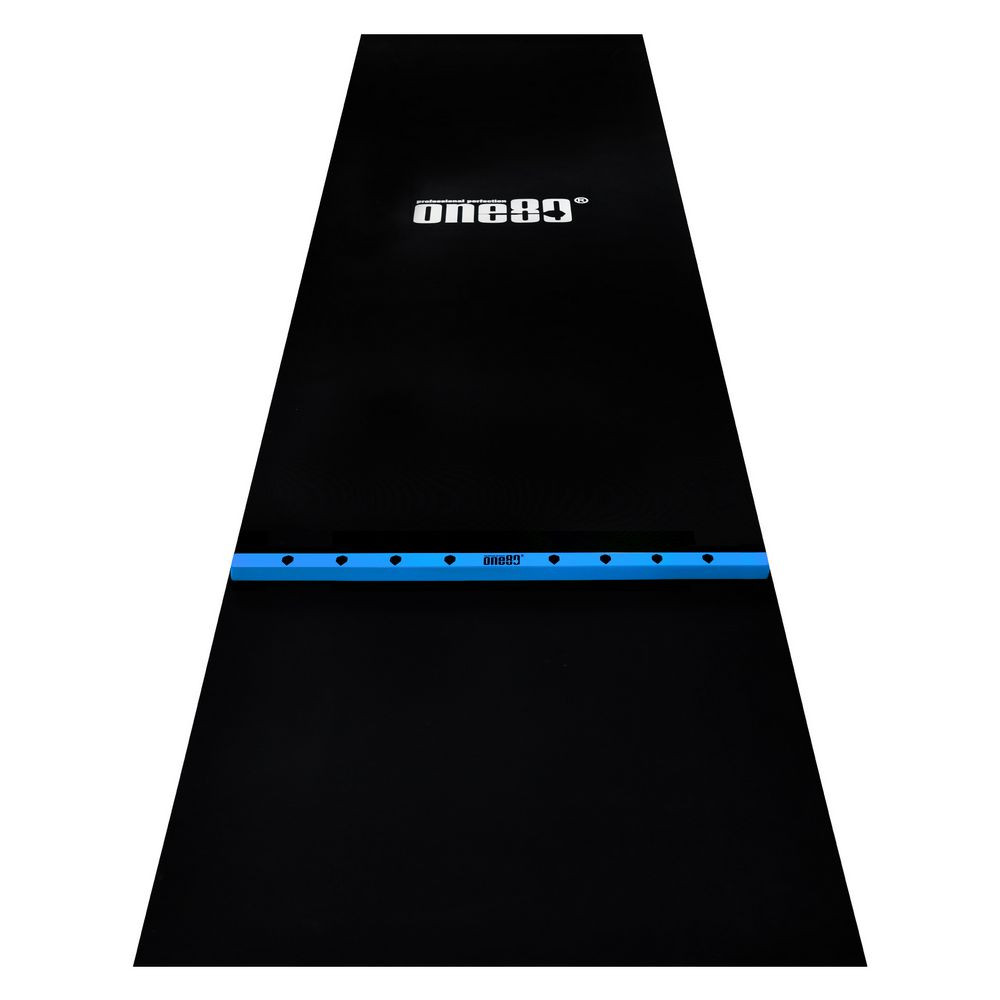 Dart gumiszőnyeg fa dobóléccel ONE80, 90cm széles, fekete-kék