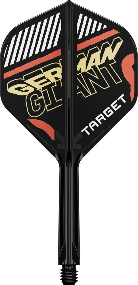 Az angol szöveg alapján az alábbi magyar fordítást javaslom: A Gabriel Clemens, a „German Giant” közreműködésével kizárólagosan tervezett Player-Edition K-Flex Flight és Shaft rendszer Clemens ikonikus stílusát tükrözi, a német zászló színeivel inspirálva. Ez a Target Darts által fejlesztett, nagy teljesítményű integrált rendszer a tartósságot, rugalmasságot és precizitást ötvözi. A K-Flex rendszer innovatív fröccsöntési eljárással készül, amely rendkívüli ütésállóságot biztosít. Az egyetlen egységet alkotó szárny és szár kialakítása minimalizálja a visszapattanásokat, és egyedi szárszakasza ütközéskor rugalmasan hajlik, lehetővé téve a dartsok szorosabb csoportosulását és a zökkenőmentes játékot. A 2BA univerzális menetnek köszönhetően a K-Flex a legtöbb dartssal kompatibilis, így könnyen használható. A K-Flex rendszerrel a játékosok mindig stabil, 90 fokos szárnybeállítást élvezhetnek, amely elősegíti a pontosságot és stabilitást minden dobás során.