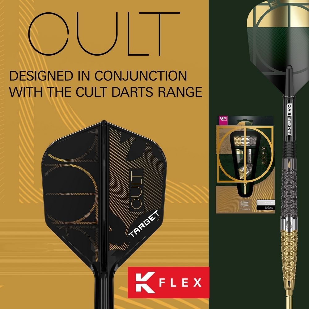 A Cult darts sorozat tökéletes kiegészítőjeként készült. Letisztult fekete kivitelben, arany részletekkel díszítve, amelyen a merész, elegáns Cult logó és a sorozat dizájnja által ihletett absztrakt vonalvezetés látható.