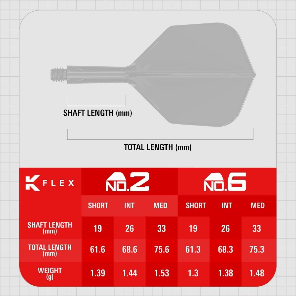 K-Flex fröccsöntött rendszerével készült egybeépített tollszár egyetlen darabból áll, így megszünteti a tollak kiesésének lehetőségét és csökkenti a mozgást játék közben. A tartós, mégis rugalmas anyag elnyeli a becsapódó nyilak ütését, így