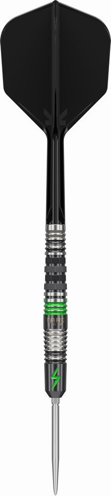 A Black Marque Lightning 3.0 egy kimagasló minőségű steel tip darts szett, amely Chris Lim és a Target Japan Black Marque sorozatának közös fejlesztése. A 90%-os volfrám tartalmú darts test egyedi, előrefelé keskenyedő profiljával segíti a dinamikus elengedést és a kiegyensúlyozott repülést. A hátsó szekció precízen kialakított gyűrűs vágásokkal és forgó, sokszögű hornyokkal rendelkezik, míg az elülső rész markáns „shark cut” vágásai azoknak a játékosoknak kedveznek, akik előretolt fogást részesítenek előnyben. Az élénk zöld színnel kiemelt villám minták a középső és első részen extra energiát és karaktert adnak a dizájnnak. Target Swiss nano hegyek Minden szett tartalmazza a Target Swiss nano hegyeket, melyek aprólékos nano barázdáik révén kiváló tapadást biztosítanak a táblán. A Target szabadalmaztatott Swiss Point technológiája lehetővé teszi a darts hegyek gyors és egyszerű cseréjét: az ehhez szükséges Swiss Point eszköz a szett részét képezi, így másodpercek alatt testre szabhatod a dartsodat. K-Flex No.6 integrált szár és toll rendszer A szett tartalmazza a fekete K-Flex No.6 integrált szárakat és tollakat is. Ez a teljesen formázott rendszer a konzisztens és tartós játékélmény érdekében készült. Fejlett fröccsöntési technológiával gyártva a K-Flex úgy lett tervezve, hogy elnyelje az ütközéseket, csökkentse a lepattanásokat és megakadályozza a tollak kiesését. A fix, 90 fokos tollállás és az univerzális 2BA menet garantálja a zavartalan, folyamatos játékot.